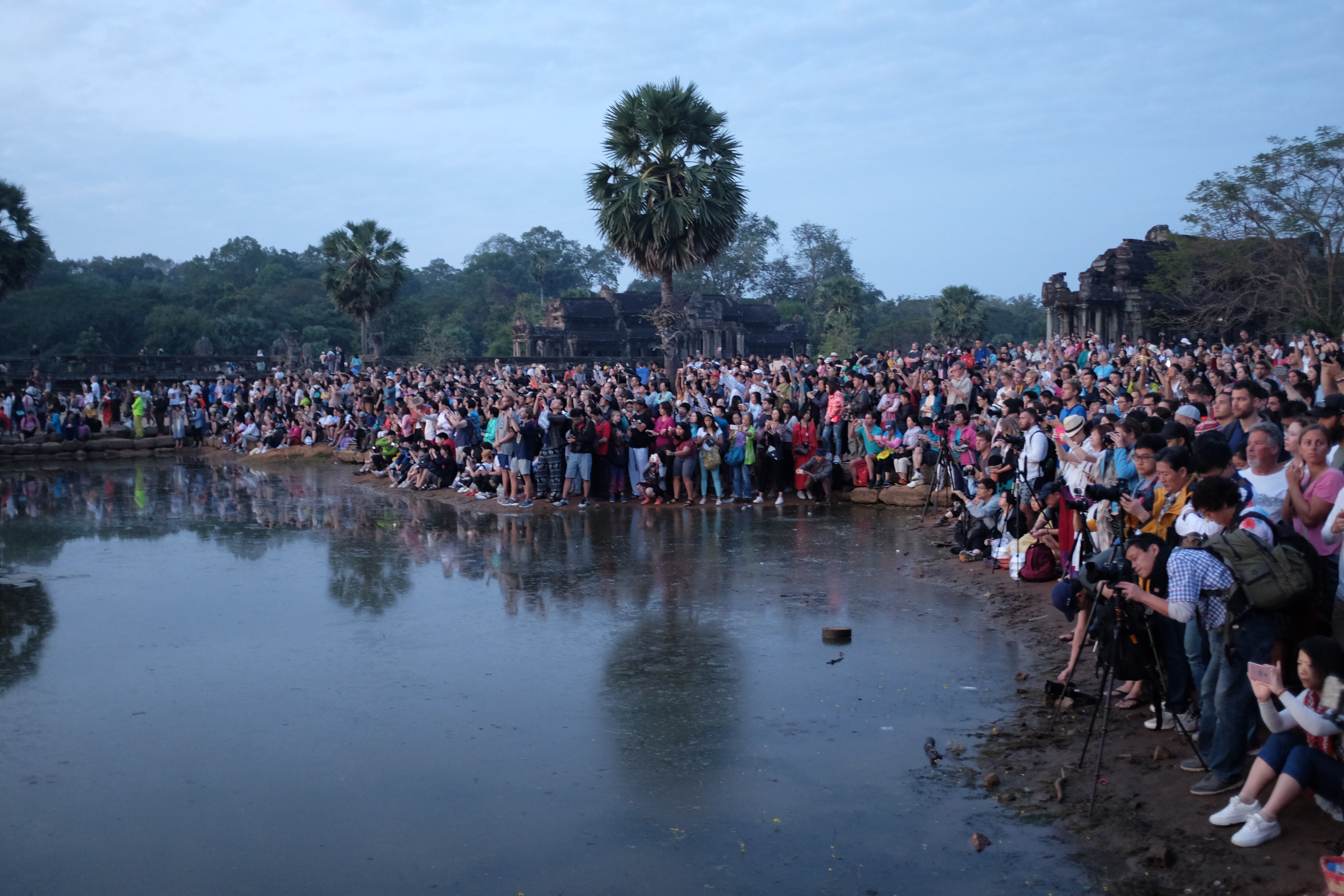There were 6 of us in the bike tour, including the tour guide. He took us on a 45 kilometer tour that visited 5 different temples. The reason we went so early was to catch the sunrise at Angkor Wat. I had heard that you must visit Angkor Wat at sunrise, cause it’s beautiful. I had no idea that every person and their mom in Siem Reap would be there at 5 in the morning as well. It was packed, and unfortunately, the crowd made it less magical. I know that I’m part of that crowd, but can you imagine visiting this temple by yourself? It’d be incredible. I don’t have any great pictures to do this place justice, but here’s one anyways. I bet Google has much better ones.