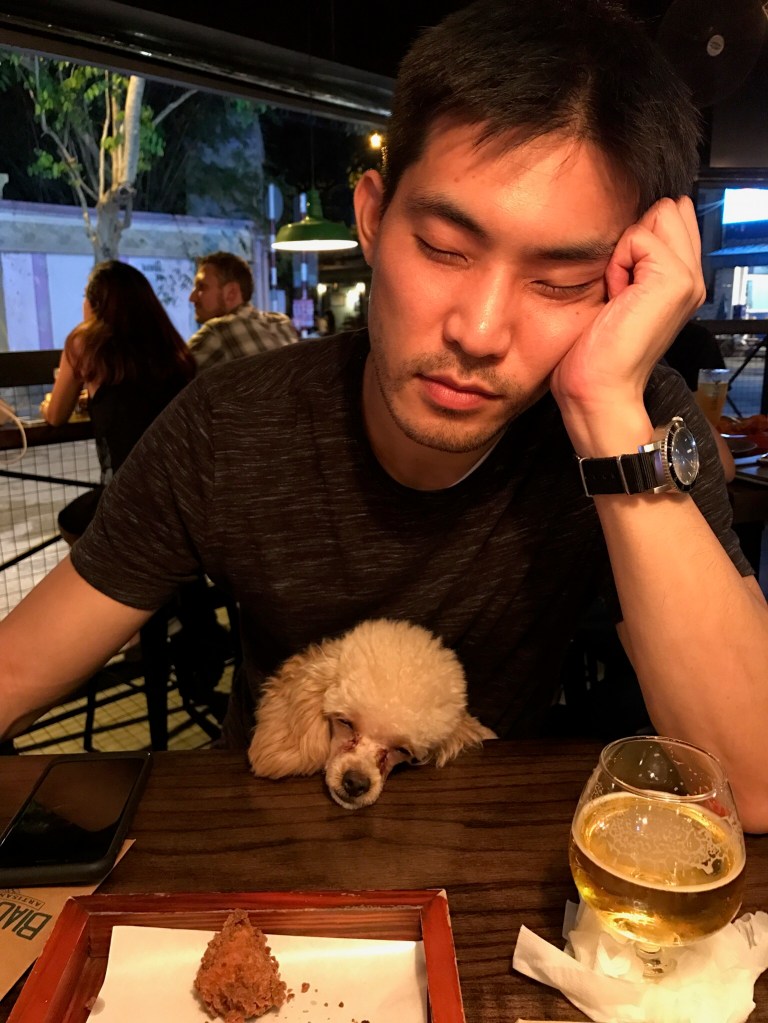Charlie took me to lunch as soon as I arrived. I thought we ate a lot. Somehow the bill came out to a ridiculous amount of 7 USD. How is food so cheap here, I asked myself. And then promptly forgot to do any research to answer my own question even though I had a computer in my hand. (Mental note: answer your own questions, dummy.) After lunch, I got to meet Charlie’s CoderSchool team and rest a bit in their office. Nice, talented team, who I’d get to know better in the coming days. Who I did get to meet and hang out with right away was Charlie’s dog, Chuon. I forget what his name means, but he was a tiny, cute, annoying dog. We got along pretty well. I don’t have a great picture of him from this day, so here’s a not so great picture of Charlie.