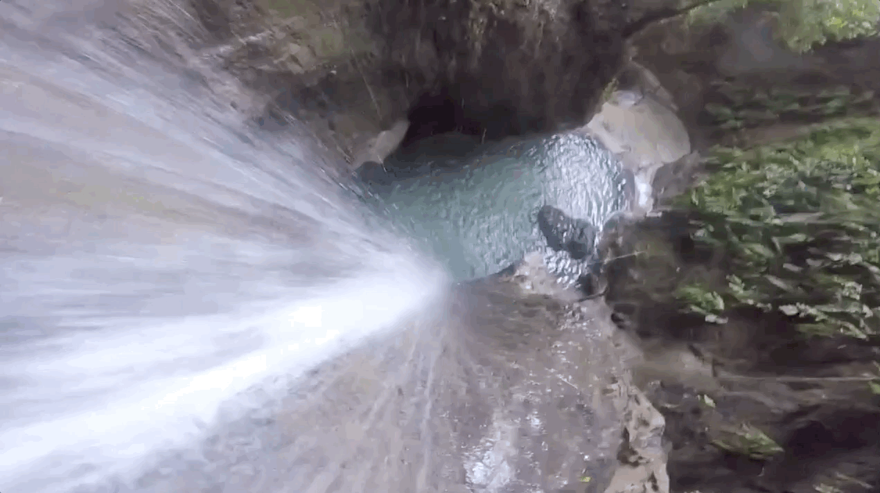 There’s also a cool jump you can do from behind the waterfall. Here’s my guide showing me how to actually get up there. I laugh when he explains how to swing your leg up to catch the ledge. Then I say “what” to the camera after I see him spiderman up the wall.