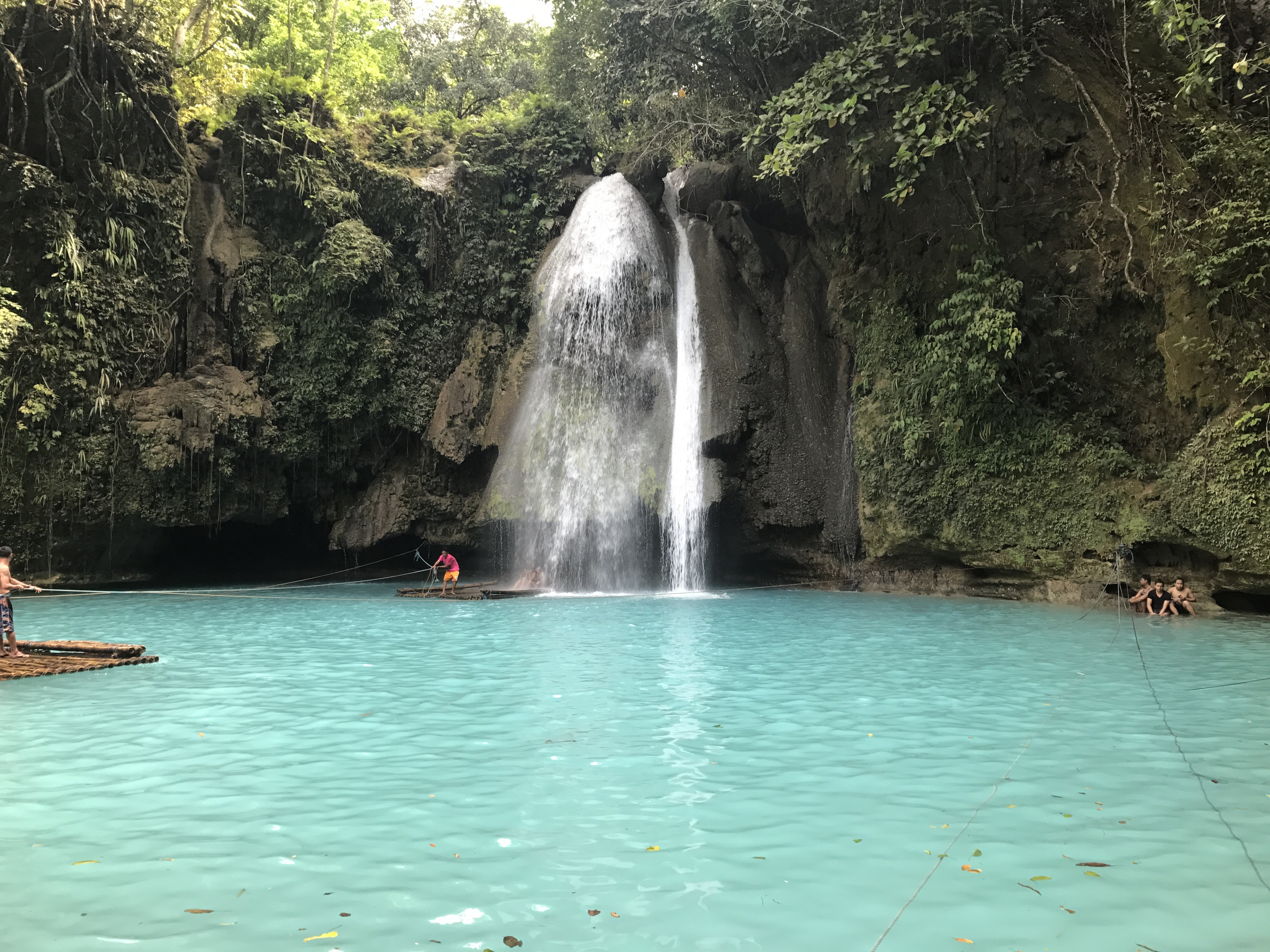 Next up was Kawasan Falls. No jumping of any kind here, but the area was really beautiful. Look how blue that water is. There were rafts you could take across by pulling on some ropes. You can see a guy pulling his raft back below.